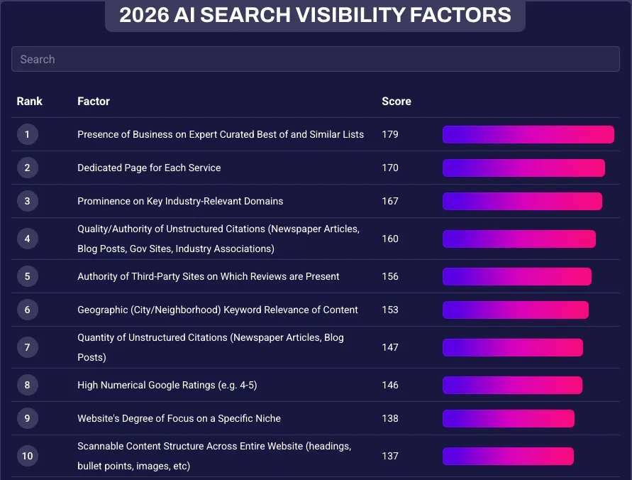 Top 10 AI Search Factors