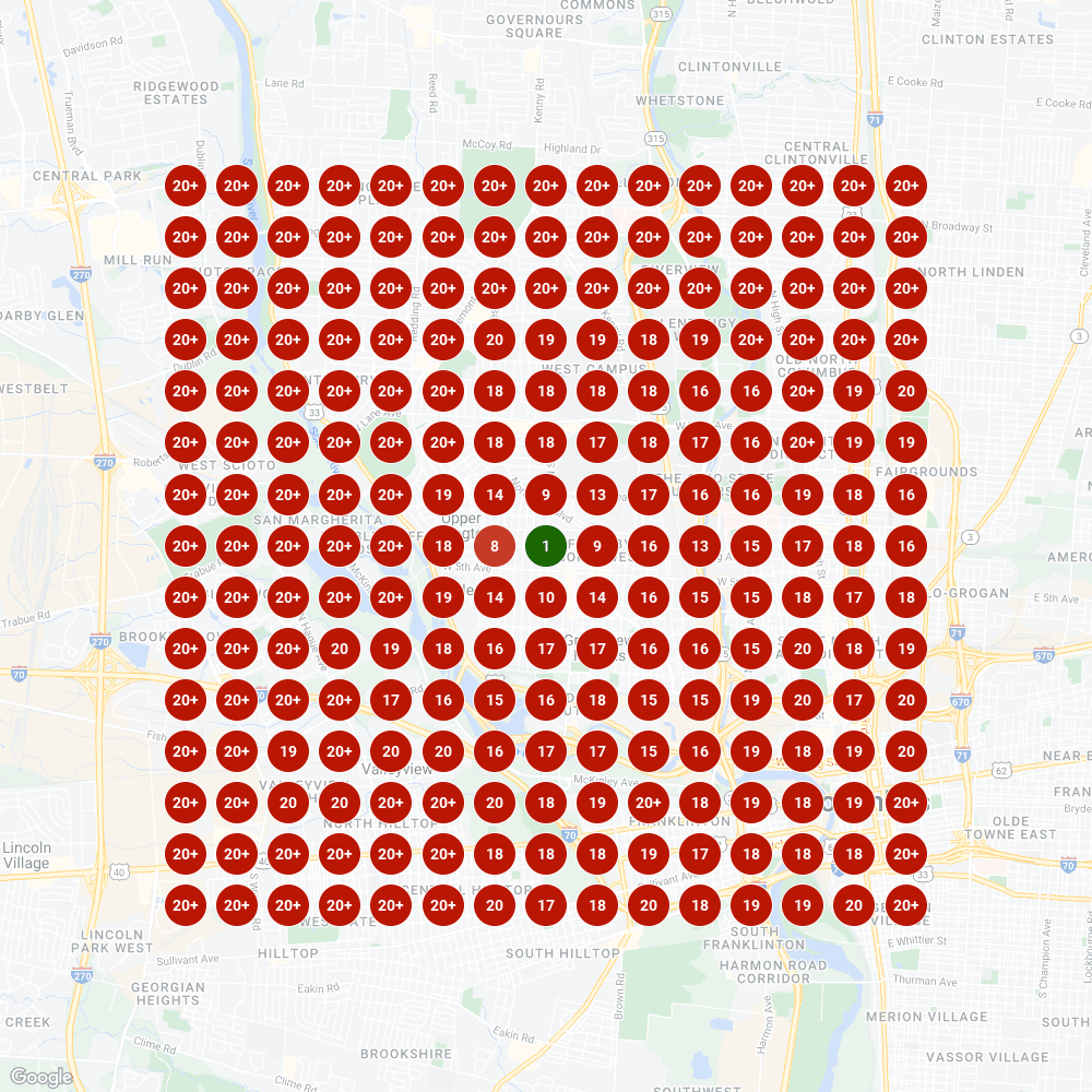 Despite starting with a new website and Map invisibility, we were able to significantly improve Local Pack visibility in a densely populated downtown Metro for competitive terms, such as “chiropractors near me” and “best chiropractors Columbus OH”