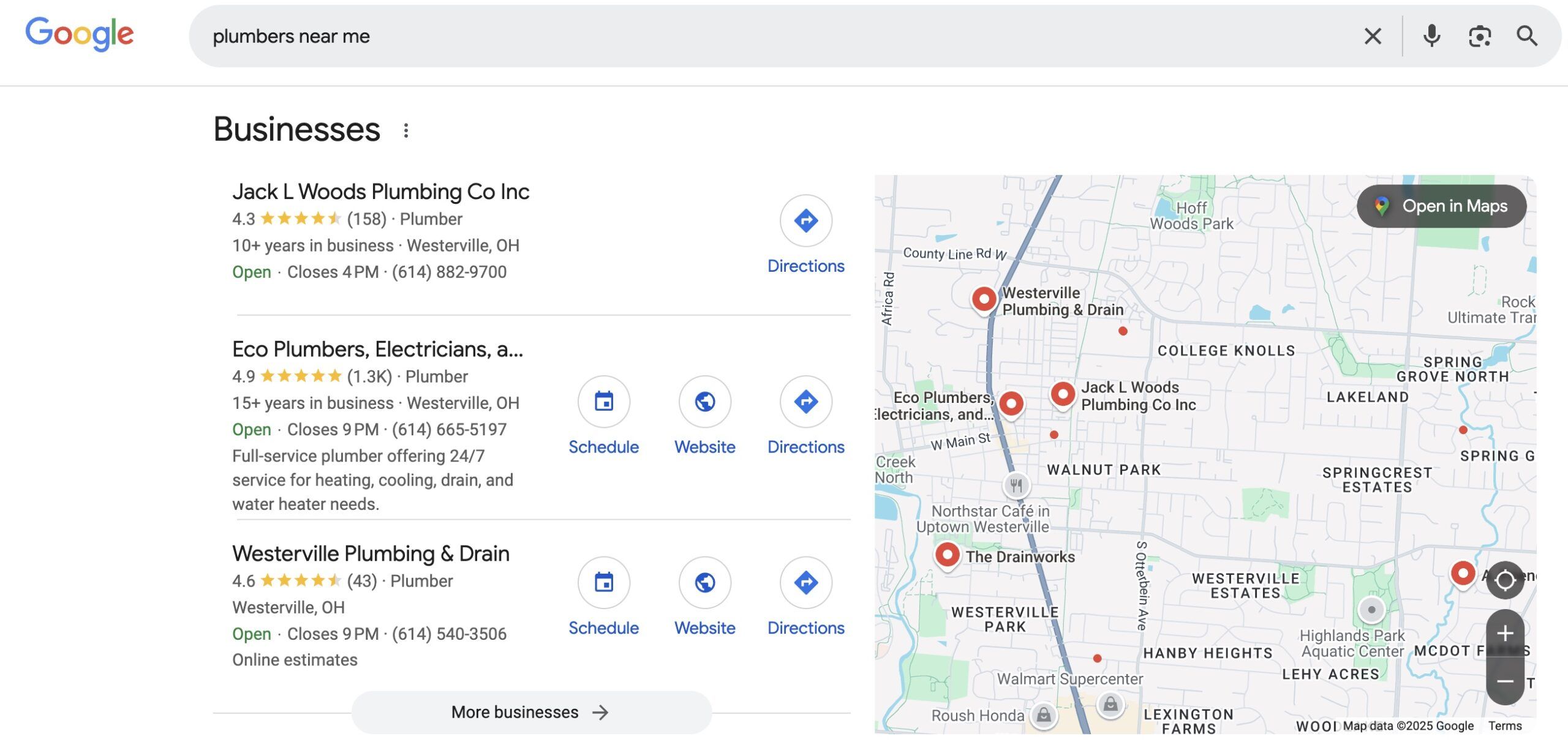Most customers for plumbers will find a business via Google’s Local Pack (your Google Business Profile)